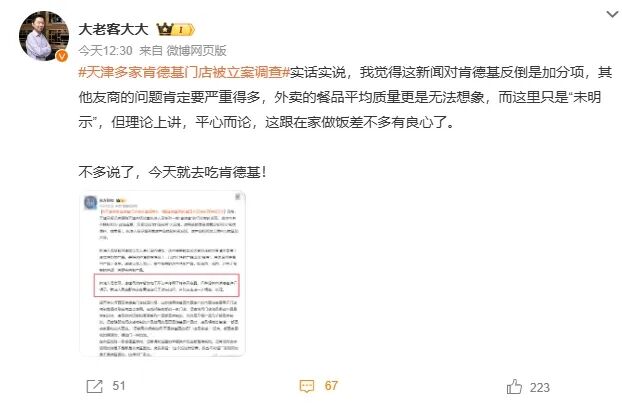 “这新闻对肯德基是加分项,友商未必做得更好”