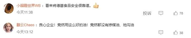 令人惊讶的是,在这场食品安全风波中,肯德基竟意外地收获了“好评”: