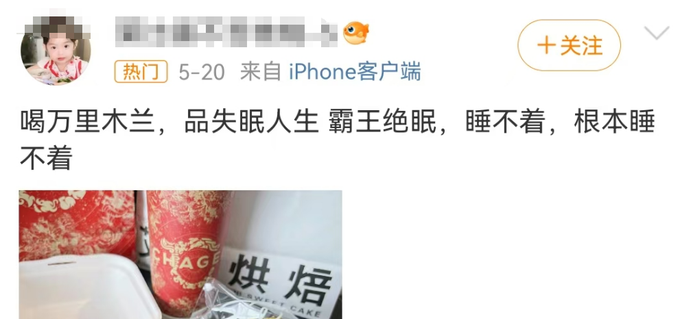 又如营销功效的,霸王茶姬万里木兰刚上线时,有人喝了一整晚失眠,霸王茶姬也靠“喝一杯睡不着直接替父从军”段子火了。