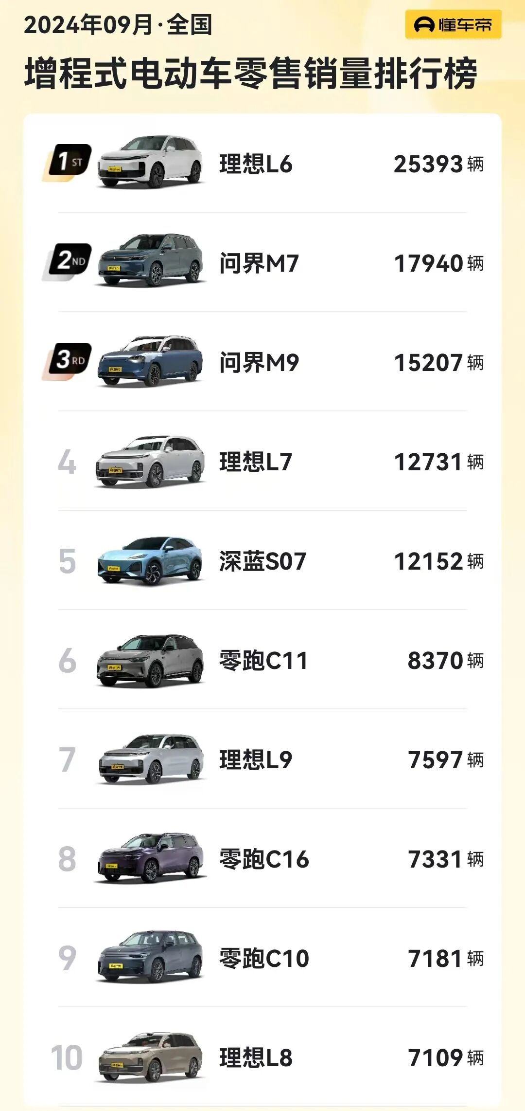 另一方面,在问界M8缺席的情况下,问界M9和M7也成功实现了对理想L7、L8、L9的销量优势(9月数据),但问题出现在理想L6的销量很高,而本该与之对标的问界M5数据十分拉胯。
