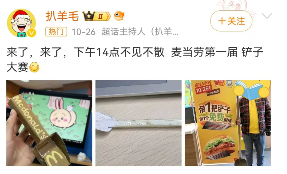 麦当劳第一届铲子大赛,可谓让i人(内向的人)属性大爆发,成为麦当劳play中的一环。