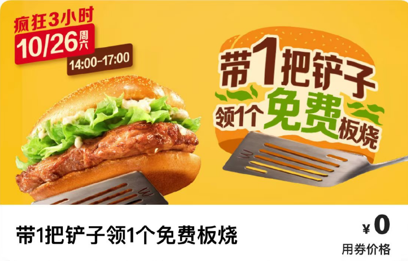 这说的不是正经铲子大赛,而是“带1把铲子,领1个免费板烧鸡腿堡”活动。