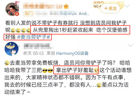 比如前期网友为薅羊毛,大开脑洞寻找各种真铲、铲子替身,并晒出自己的战绩,也是在给麦当劳贡献UGC。