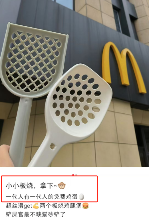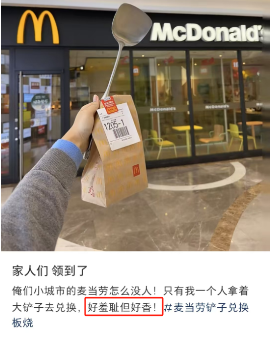 麦当劳只不过把鸡蛋换成了汉堡,将铲子包装成了社交货币,利用旧元素新组合的方式,再次上演“排队领鸡蛋”的名场面。