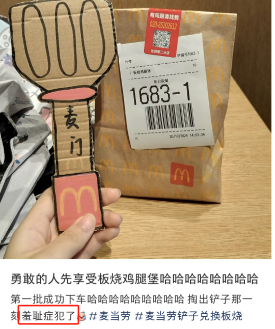 后续网友带着铲子前往门店兑换汉堡,意味着要在公共场合“对暗号”,对于社恐来说,这实属是大型社死现场。