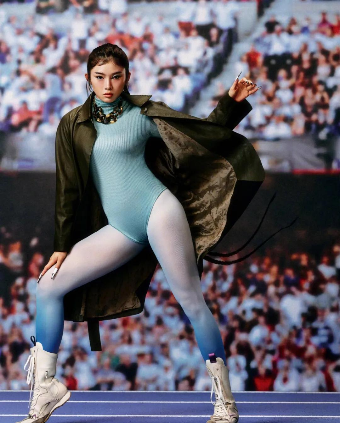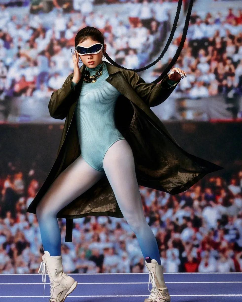 通过紧身连体衣与运动鞋的巧妙搭配,吴艳妮打破了传统刻板印象,展现了运动员独特的风采。
