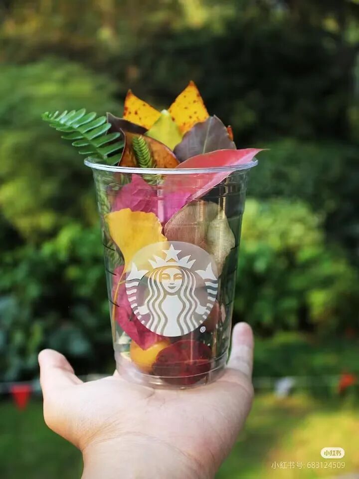 然而不是每一杯饮品都有出镜机会,观察网友的摄影作品可知,除了适合做树叶收集容器的透明杯子之外,设计精美且深秋色调的包装更容易出镜。