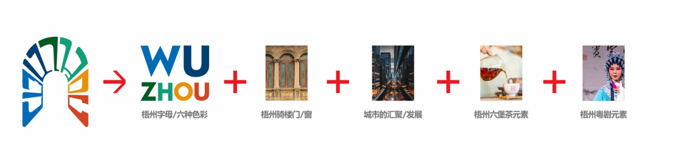 LOGO整体是一个拱门的造型,拱门形状中嵌入了梧州大写拼音“WUZHOU”,增强了视觉吸引力。