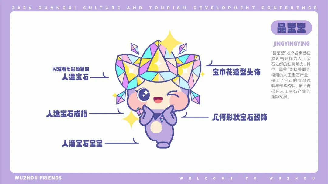 【晶莹莹】寓意梧州人工宝石晶莹透亮、璀璨夺目。