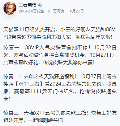 王者荣耀双十一活动