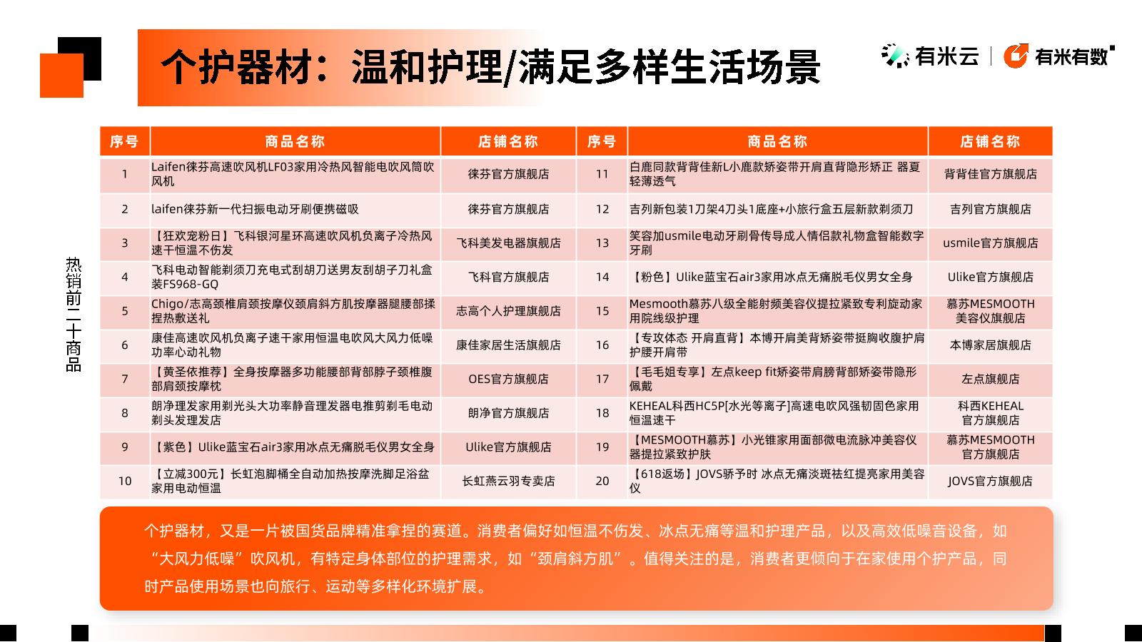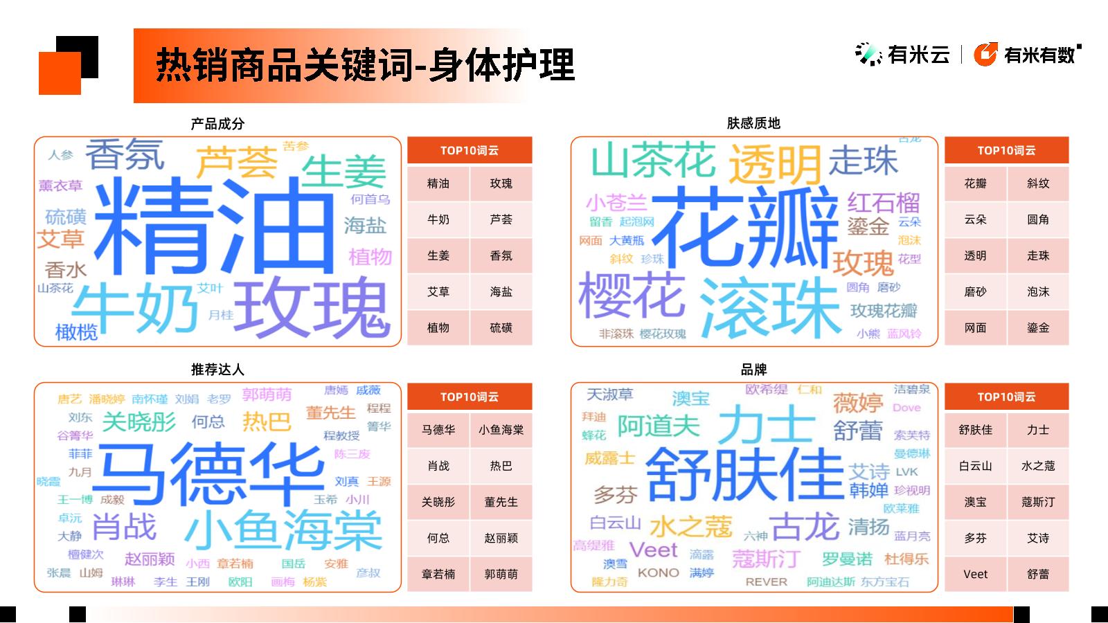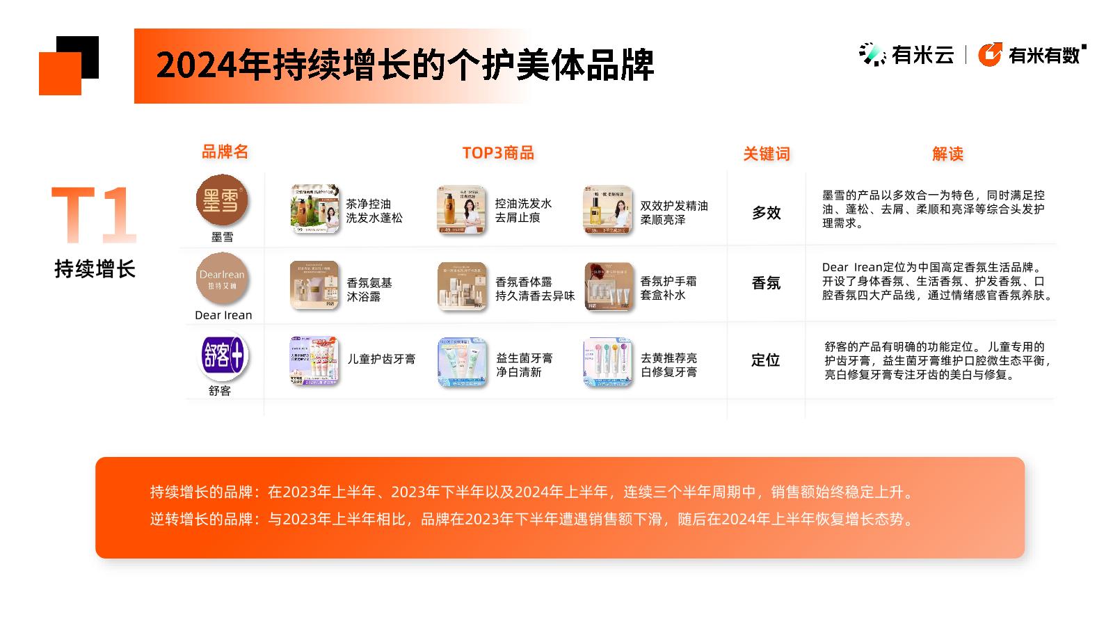 正是基于这样的洞察,新电商营销大数据分析平台-有米有数,推出《2024抖音电商个护美体趋势洞察》,从热销商品、爆量品牌等方面洞察消费者偏好,并拆解月均GMV5000万+的优秀企业,让你在抖音做生意更有门道。