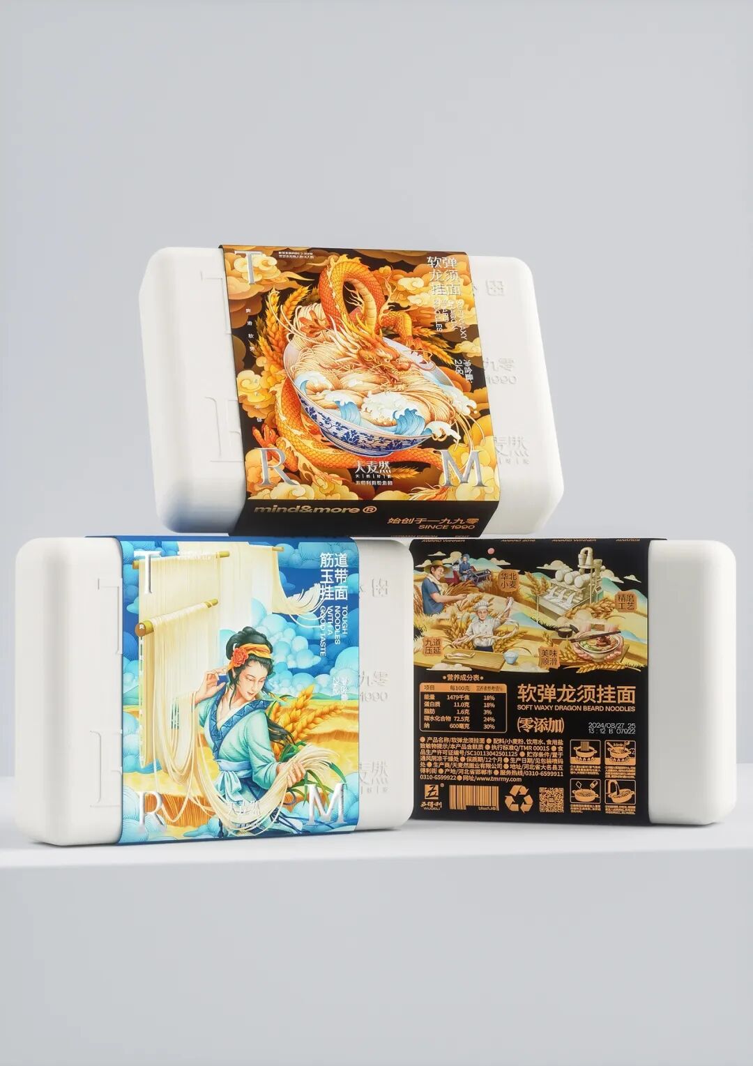 考虑到品牌成本制作的利润等多个方面,我们常见的面食包装往往遵循较为传统、保守的设计风格,缺乏突破性的创新。当然,面食品牌想要在这片红海市场上杀出重围,打造面条包装新赛道,设计理念也必须随之转变。今天就来看下这些让人快速记住的面条包装,是如何寻求突破点的。