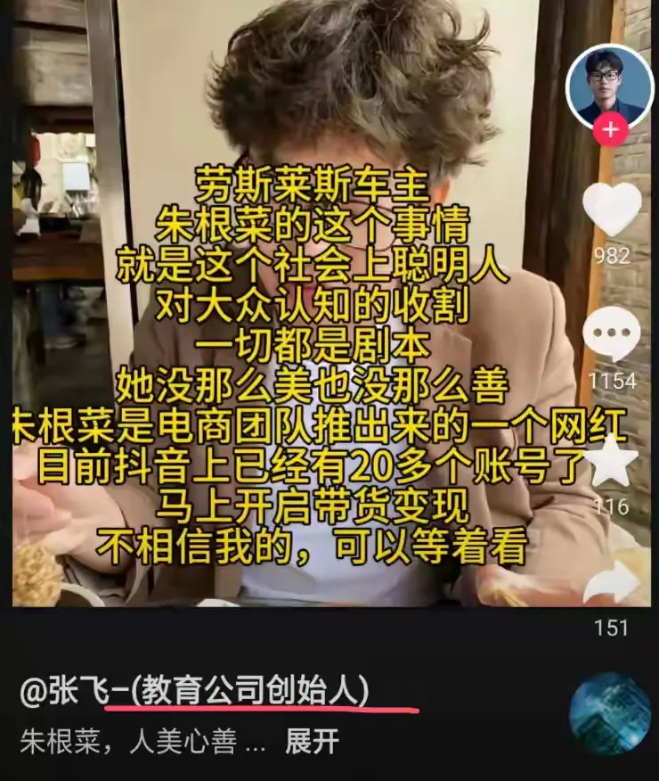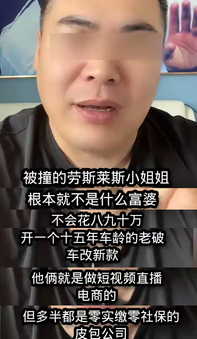 其一,有博主称,劳斯莱斯女车主是假富婆,真富婆不会耗费八九十万去购置一辆有着 15 年车龄的老旧车辆并改作新款。同时,他还透露女车主从事短视频直播电商,其所注册的 4 家电商公司多半为“空壳公司”。