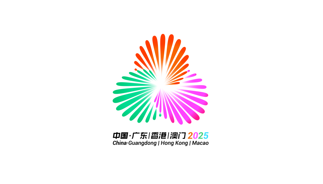 会徽以“繁荣、包容”为立意,撷取礼花绽放瞬间,由三朵花瓣交叠旋转形成图案,通过提取花朵外形和色彩,环绕花心螺旋围合一体,形成同心礼花,寓意粤港澳大湾区交融互通、活力无限,背靠祖国、绽放世界。