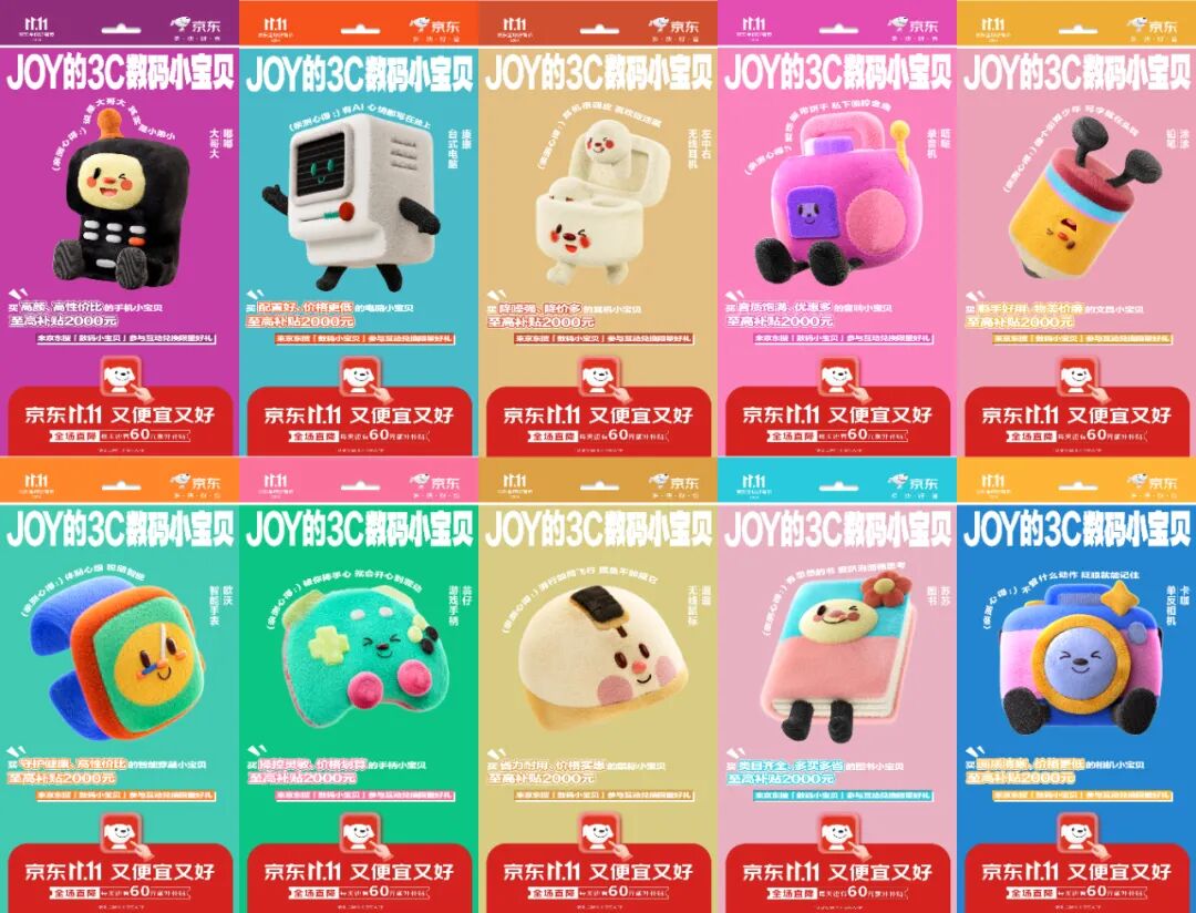 可以想像,日后这些代表着京东3C数码的玩偶,会被用户摆到了家中,床边,工位旁,甚至挂在了包上。这份真实的喜爱,也是这次营销为用户提供的另一种情感价值。它也能让这份好感与认知度,潜移默化地转化到品牌之上,成为长久有效的营销资产。