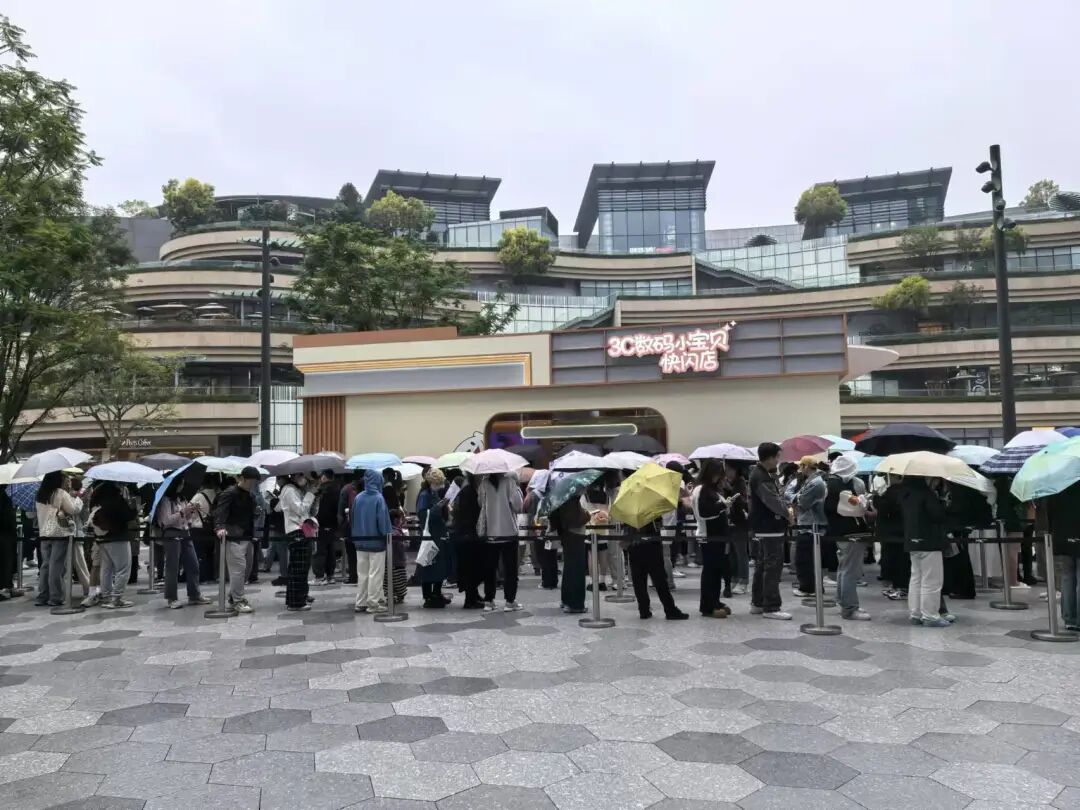 就在上周三10点开始,成都万象城门前的广场上,排起了一支超长的队伍。沿着队尾走1分多钟,就能看到一家快闪店。