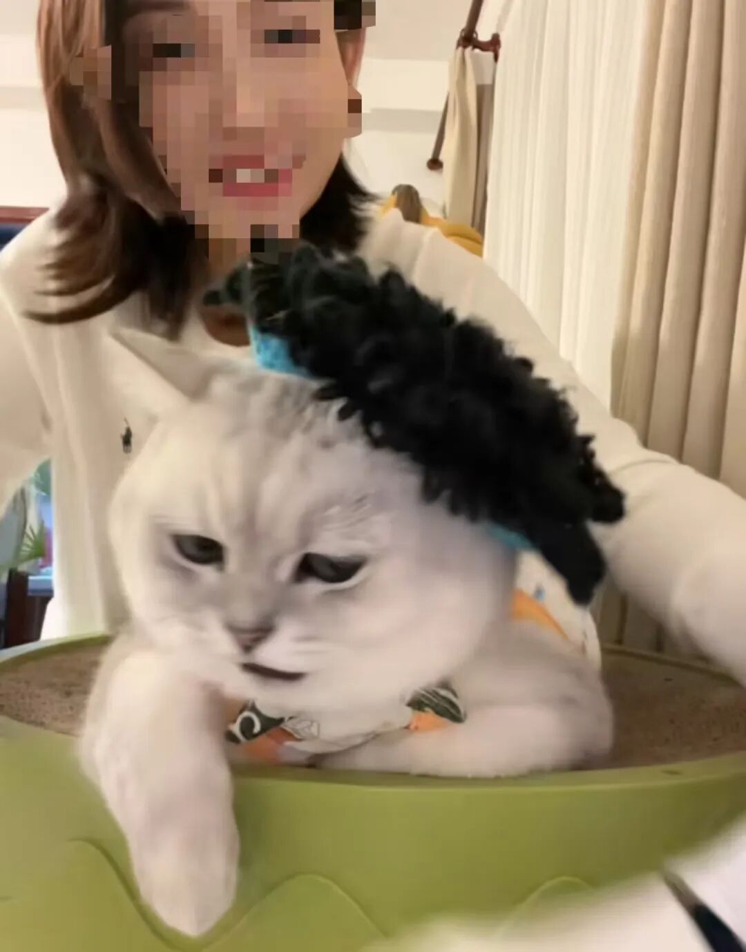 一位长得像秦海璐的主播,直播的时候,她的银渐层表现出反感,但是吃到冻干就秒换笑脸,由此喜提绰号“邪恶银渐层”。