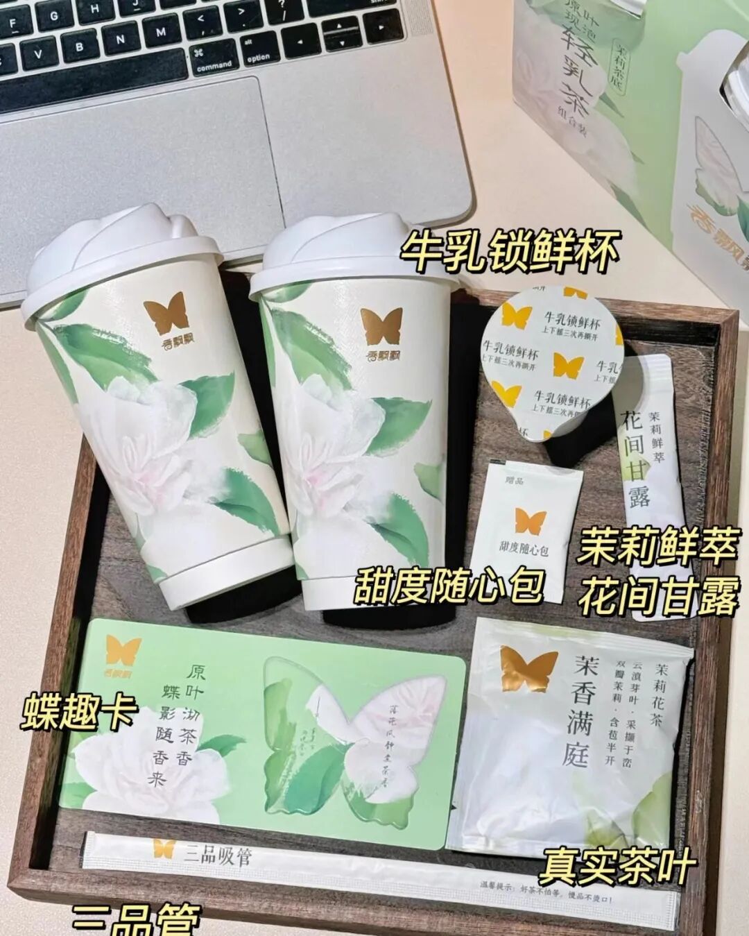 这不就是线下茶饮店的轻乳茶嘛,其纸杯设计也与茶饮店纸杯无异。就这样,香飘飘用杯装零售的姿势杀入了“轻乳茶”赛道。