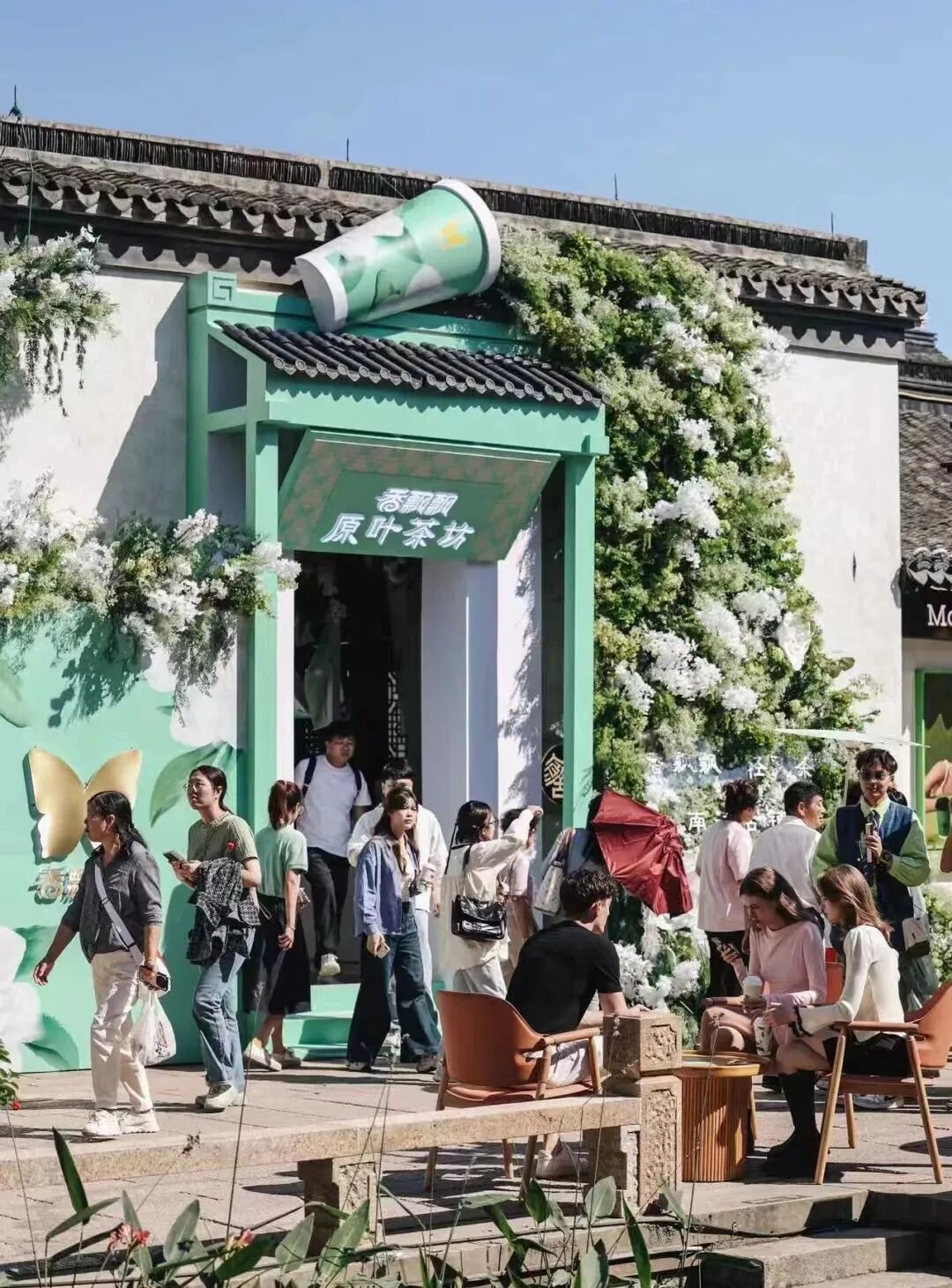 为了让消费者感受到自家轻乳茶的美味,并体验DIY现泡的快乐,香飘飘在国庆期间,在南浔古镇开了一家“原叶茶坊”快闪店。