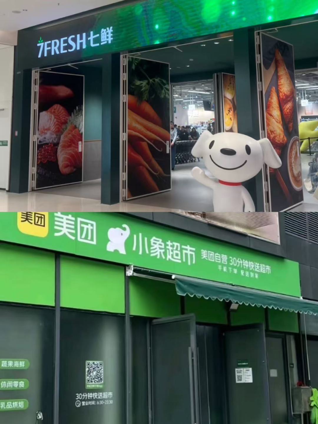 京东七鲜与美团小象、盒马更是在即时零售行业,比谁送的更快、更便宜。之前就有盒马、山姆之间的“移山价”事件。现有京东七鲜、美团小象超市开启“价格战”事件。