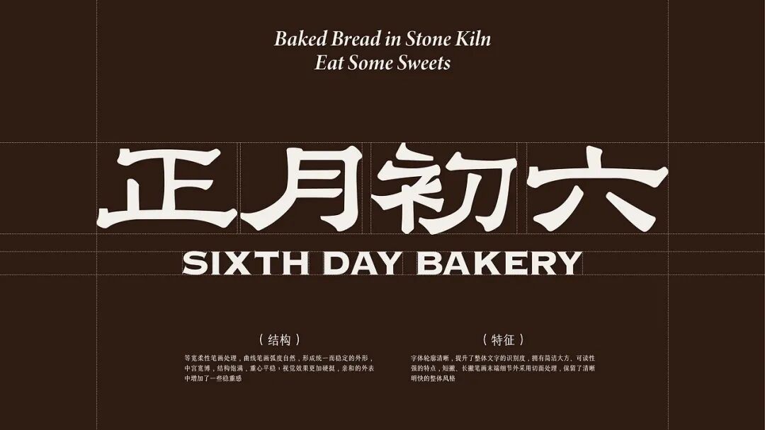 像今天分享的「正月初六」轻食面包,整体就以温暖、治愈的基调展开设计,精致而又不失时尚感。首先在字体设计上,以“点字小隶书”为基础字形,将提取出来的笔画进行合理修饰,最终形成的字体轮廓清晰,简洁大方、可读性强,同时在笔画末端细节处采用切面处理,保留了清晰明快的风格。