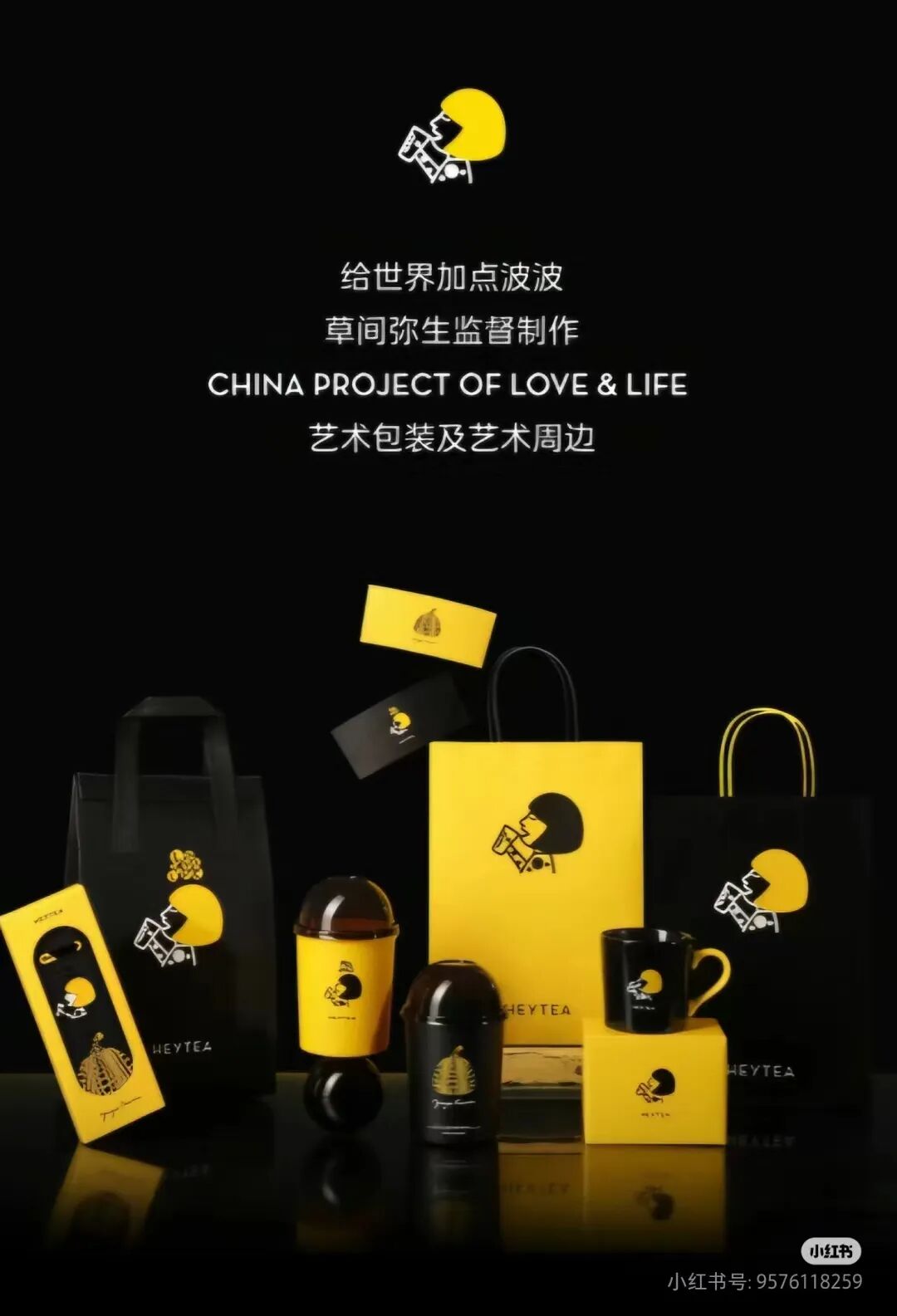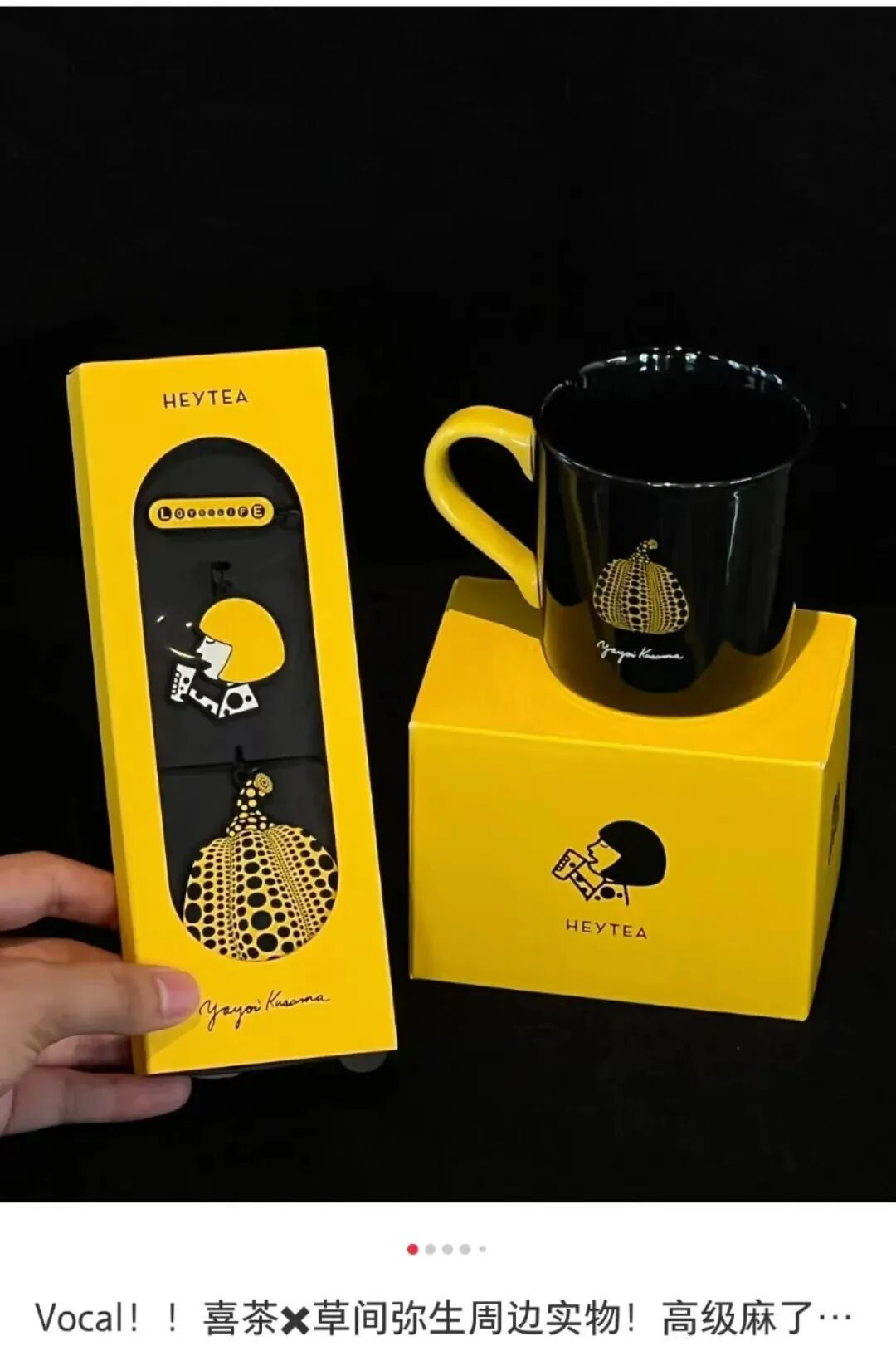 采用草间弥生监制的包装的喜茶豆豆波波茶、烤黑糖波波真乳茶等7款波波系列茶饮上线。还有草间弥生风的马克杯和金属挂件。