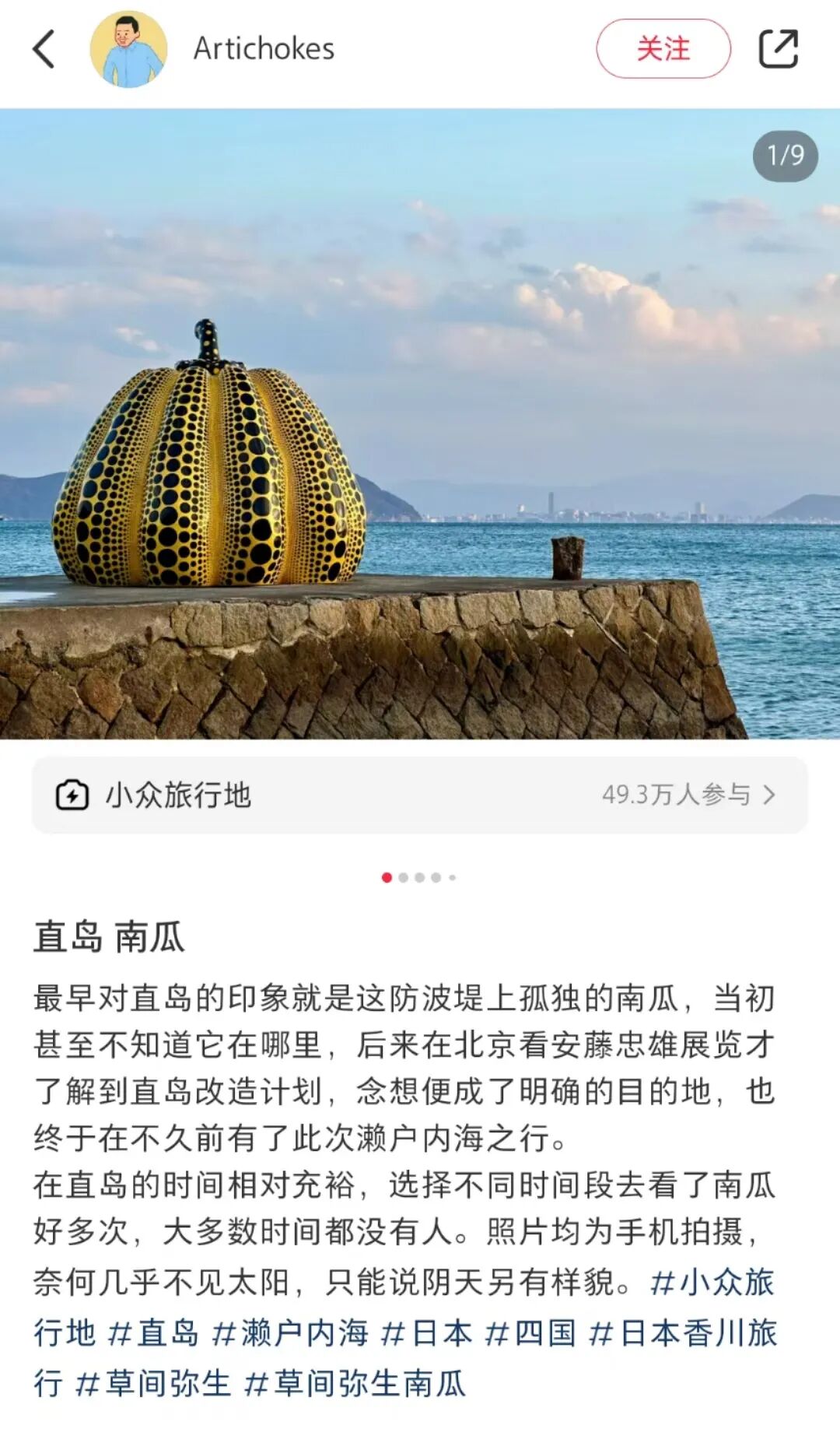 有人在日本直岛,偶遇了草间弥生的波点南瓜。