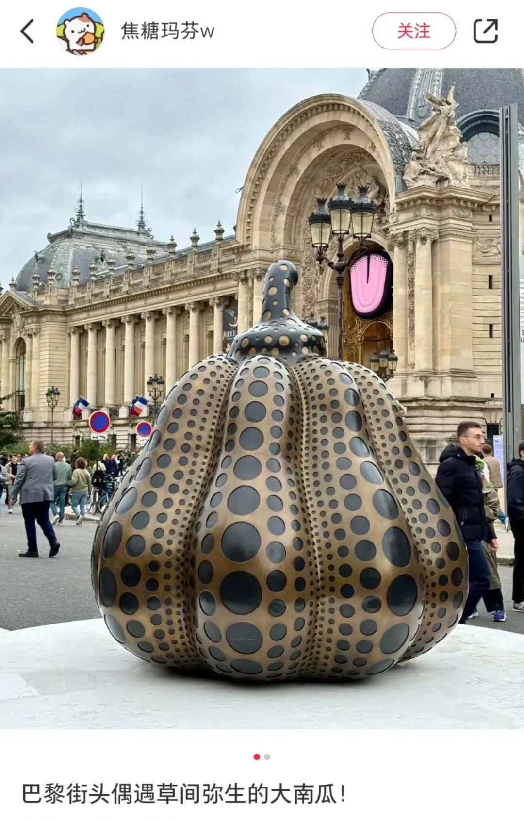 有人在法国巴黎,偶遇了又一只草间弥生的大南瓜。