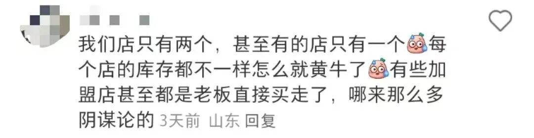 评论区有人给出解释,除了直营店,每个店只有3个左右,肯定一分钟秒空。但是这个说法不能解释为什么黄牛能买到。