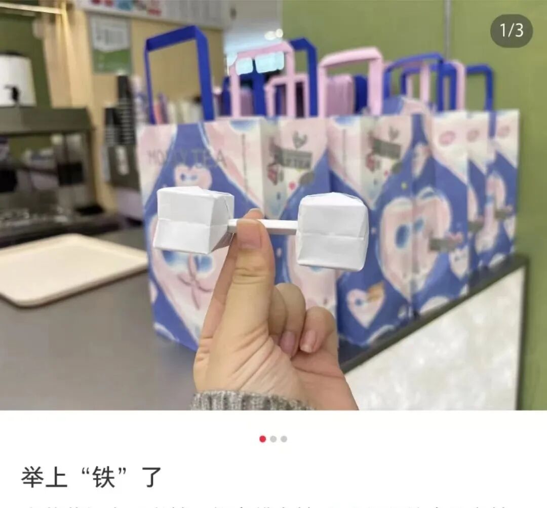 举铁难度0%,好笑程度1000%。相信店员小姐姐全程忍着笑做完的奶茶,然后双手奉上活动挂件套餐。