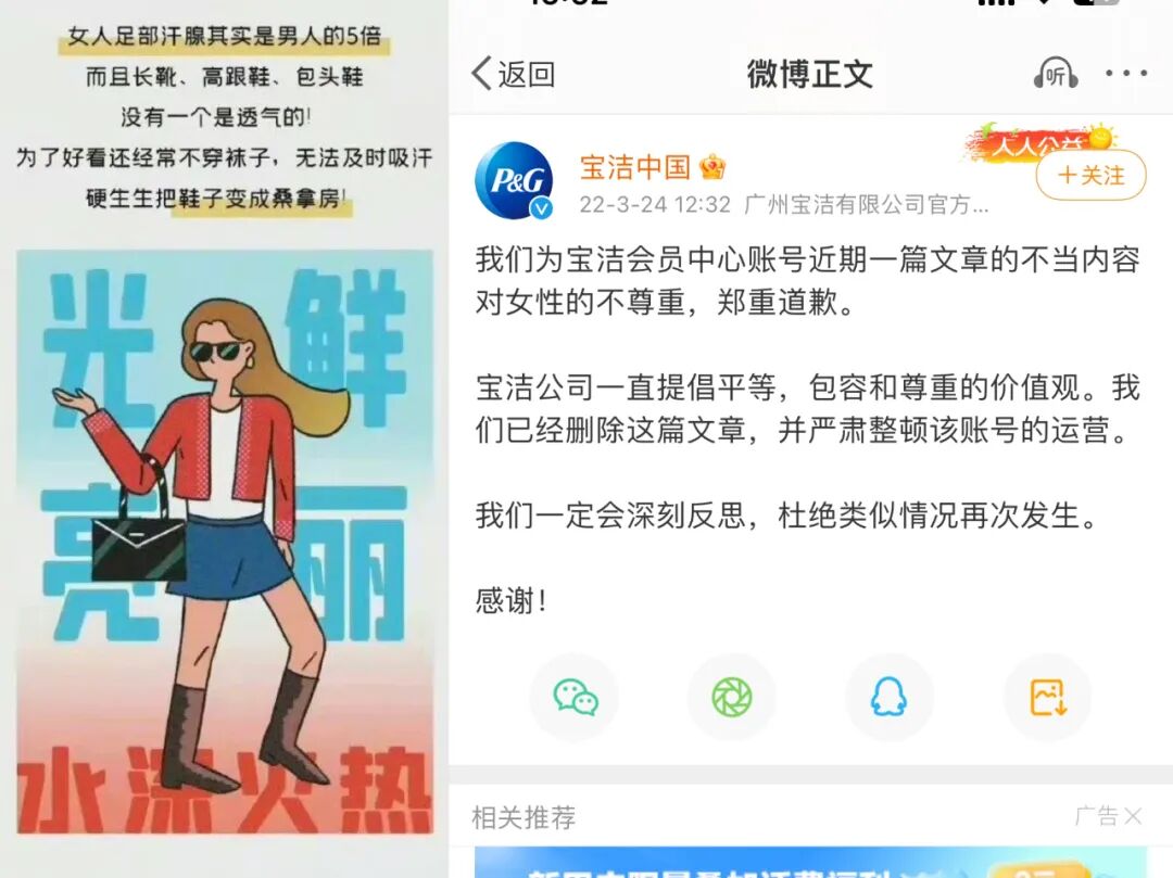 买日用品,宝洁一番数落,“脚臭是男人的五倍”、“头发比男人脏一倍”、“内裤比男人脏”、“胸部最臭”,用经不起推敲的虚假数据,污名化女性。