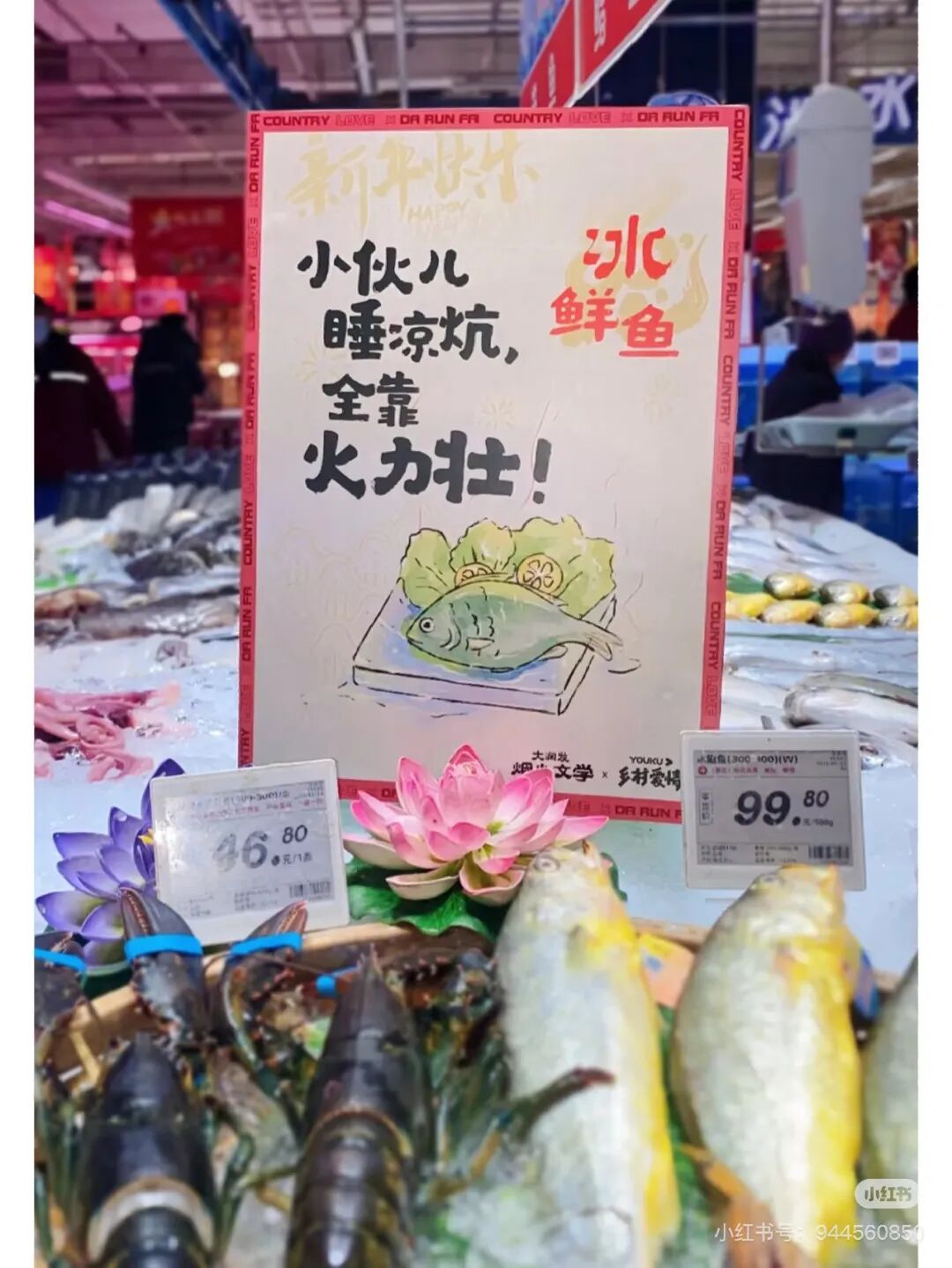 比如大润发与大热IP《乡村爱情》梦幻联动的东北话文案,“不样摸”、“扒我可以,扒瞎不行”等等,让超市里的商品都有了黑土地的气息。