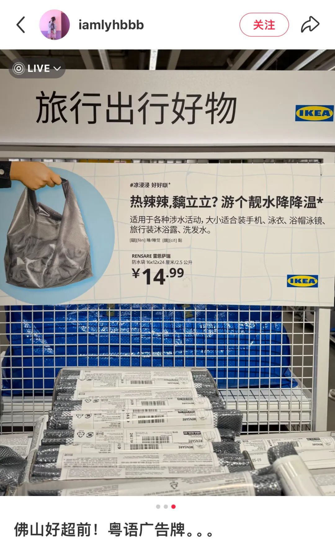 今年夏天,广东的宜家门店就用“粤里粤气”的文案宣传防水袋、啤酒杯、龟苓膏等产品,完成了一次成功的本土化营销。