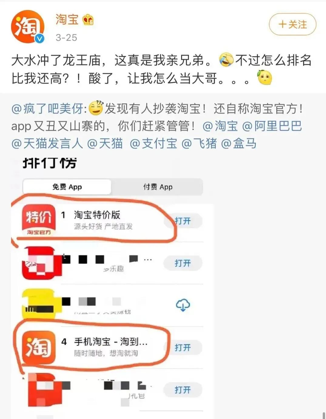 就在官宣的前一天,由于长得太丑,淘宝特价版被网友怀疑为淘宝的“山寨盗版”,惨遭打假。