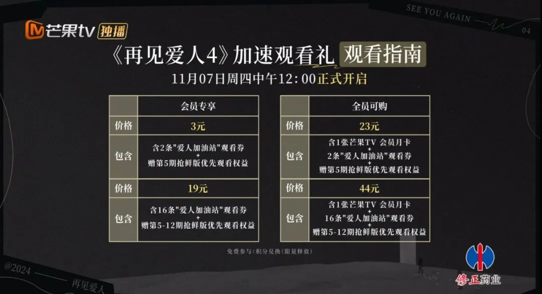 芒果TV的胃口当然不仅限于此,在11月7日,平台又为节目推出了全新的加速观看礼活动。会员在单期多花3元或一次性花19元的情况下,就可以在每周五提前解锁下一周的部分节目内容。