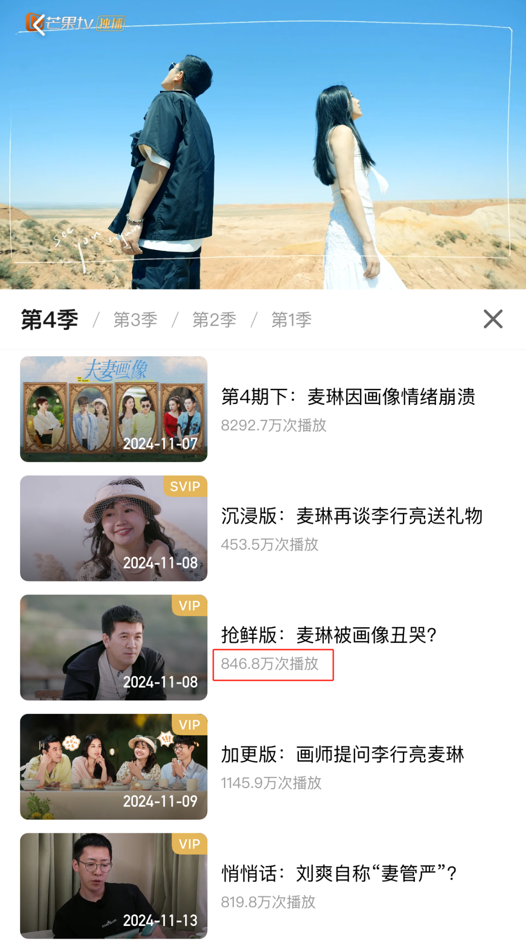 截至目前,该段以《抢鲜版:麦琳被画像丑哭?》为标题的视频,播放量已达到846.8万次,如果按照单期3元来计算,芒果TV光靠这一期的收益就超过了2500万元。