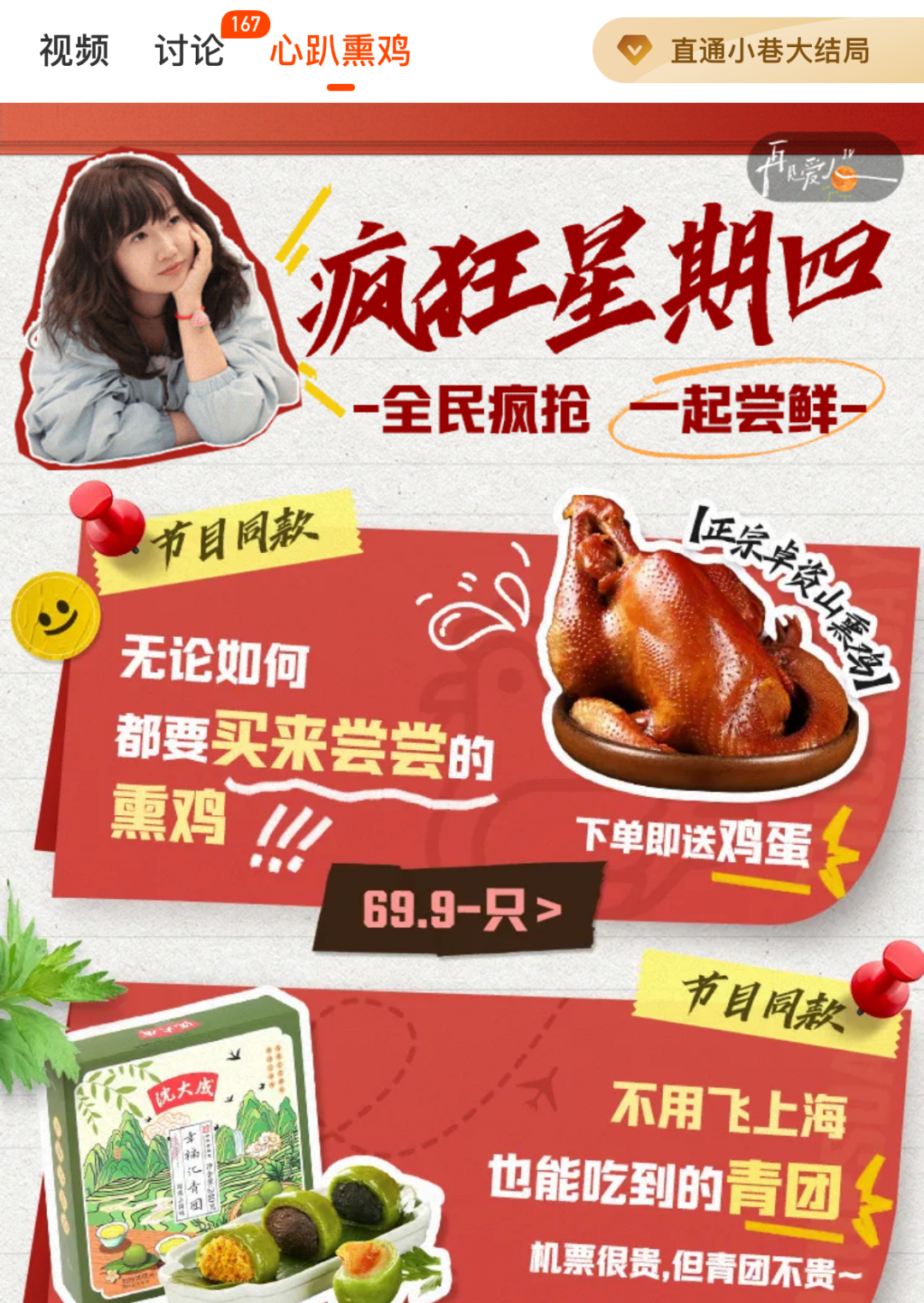 据悉,麦琳执意要买的是内蒙古自治区乌兰察布市卓资县的“卓资山熏鸡”,早在芒果TV上线产品前,卓资山熏鸡生产方就在短视频平台上致谢《再见爱人4》栏目送来的“泼天富贵”。