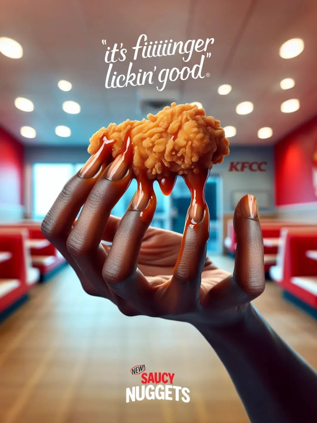 就像肯德基的AI海报,让人毫无食欲,产生生理不适;就像麦当劳的AI广告片,AI美女满满的科技感,像硅胶娃娃一样脱离现实,给人的第一感觉不是好有创意,而是这不真实。