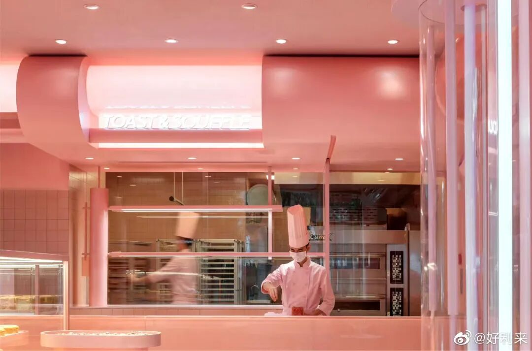 除了提高员工的服务质量,好利来也对门店进行了重新设计。像几年前我在南京,当时正值好利来的Pink店在新街口开业,我一眼就被其建筑之美给捕获了,粉红的色彩让人置身于著名电影《布达佩斯大饭店》的场景中,既明媚又协调。
