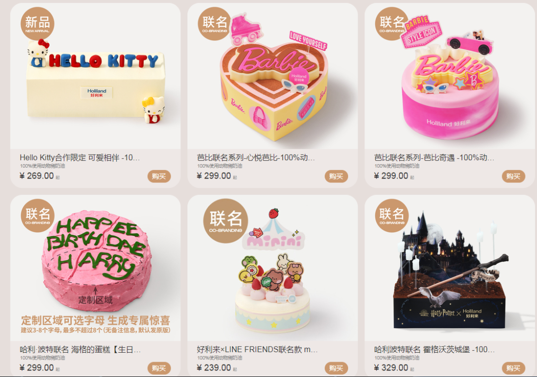 据企业管理杂志统计,截至2023年10月,好利来相继与40多个品牌或IP开展联名营销,像与宝可梦、奥特曼、哈利·波特、迪士尼、玩具总动员、三丽鸥、芭比等大IP推出的产品都是大爆款。