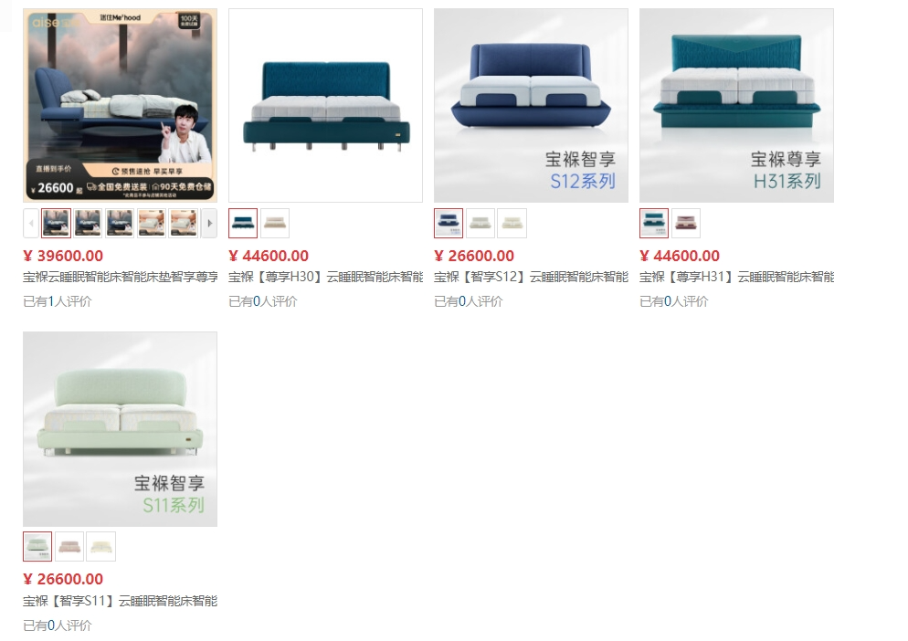 高举高打营销背后,是aise宝褓冲击高端品牌的野心。据aise宝褓官网显示,其智能床产品分为“智享、尊享、奢享”3个系列;宝褓京东旗舰店显示,其已上架的产品售价区间在2万-5万元之间。