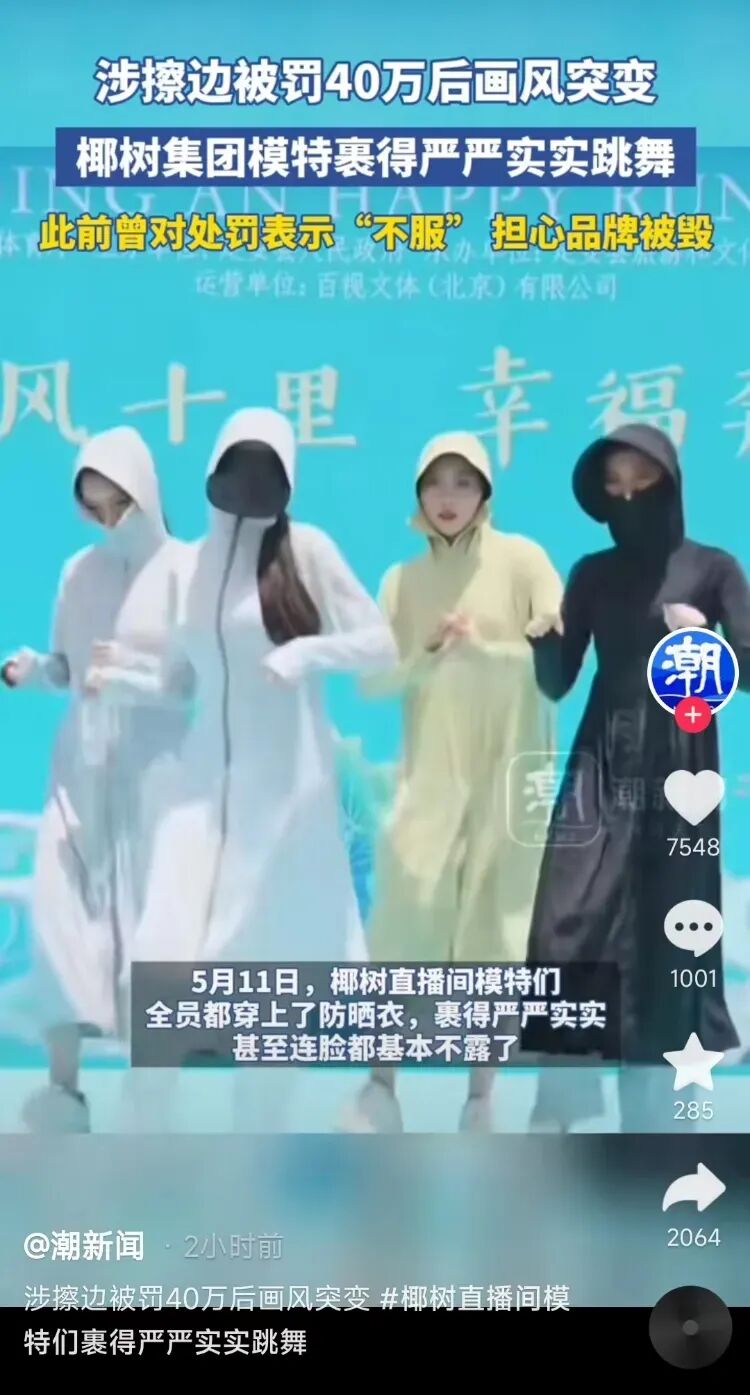 当初椰树陷入“椰汁擦乳”广告被罚40万风波,转身就在直播间上演画风突变。