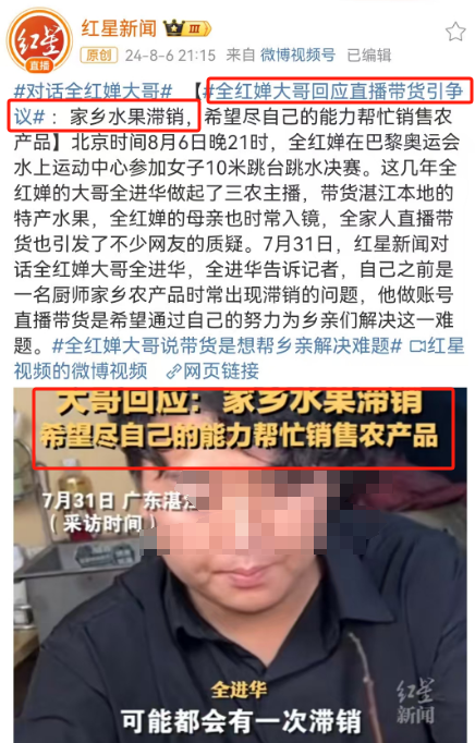 就像当初全红婵夺冠后,全红婵亲哥直播带货,有人看到蹭流量借机牟利,有人看到合理合法改善生活。