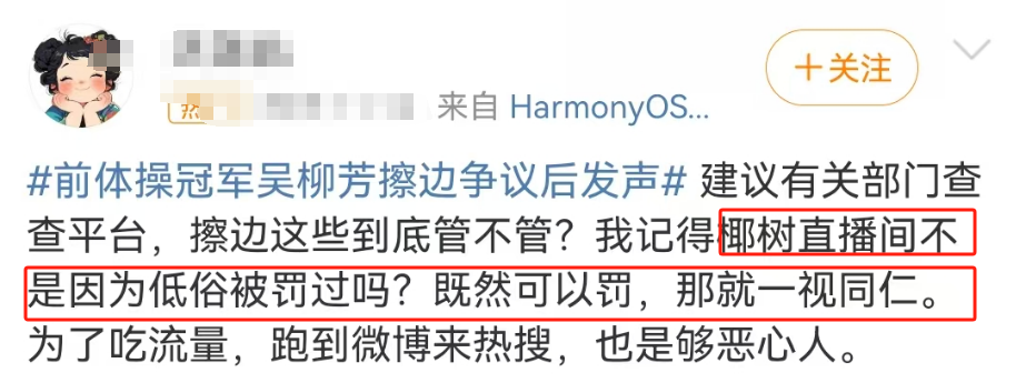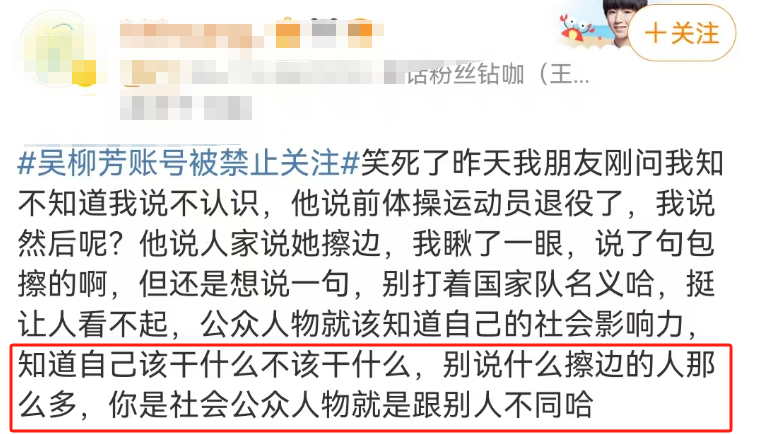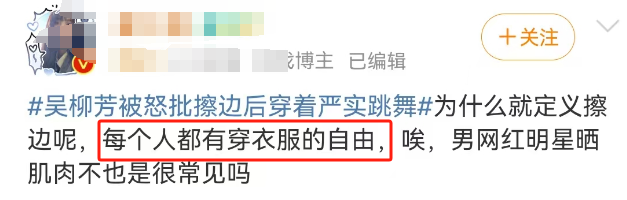 虽然目前吴柳芳关注被禁,但关于算不算擦边和恰饭方式对不对的讨论还在。