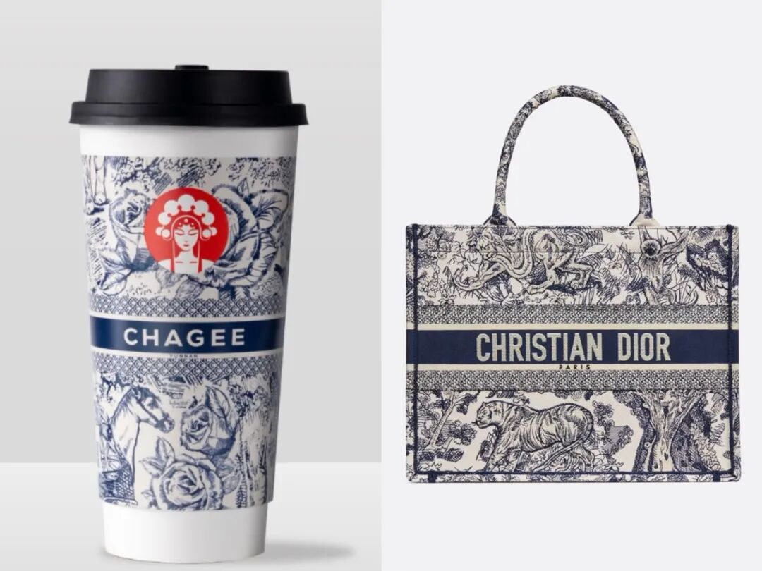不过,将Dior单品跟霸王茶姬包装放在一起时,不少人认为这是同一家品牌。
