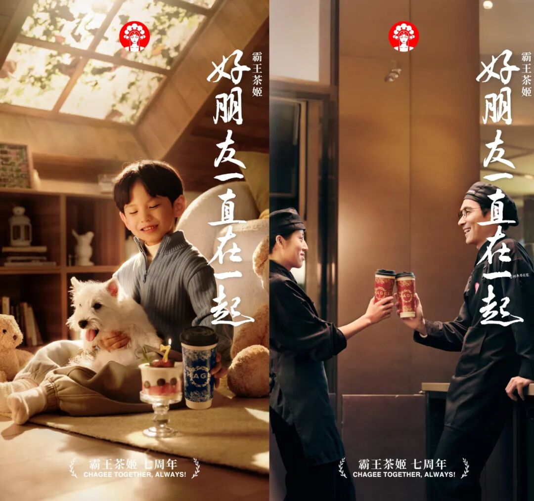 此外霸王茶姬还拍摄品牌短片《霸王茶姬好朋友一直在一起》,在毕业、父子外出、奶茶工作等场景中,营造霸王茶姬和茶友一起开心碰杯的场景,呈现霸王茶姬用一杯茶连接更多人的社交价值。