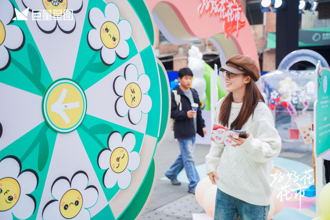 在线下巨量星图联合自由点、百雀羚、瑞士莲、摇滚动物园等品牌,在成都推出线下慢闪「好好花花市」创意市集,打造高颜值品牌摊位和创意堆头,把现场布置成网红打卡地激发情绪共振,吸引超15万人次线下互动。