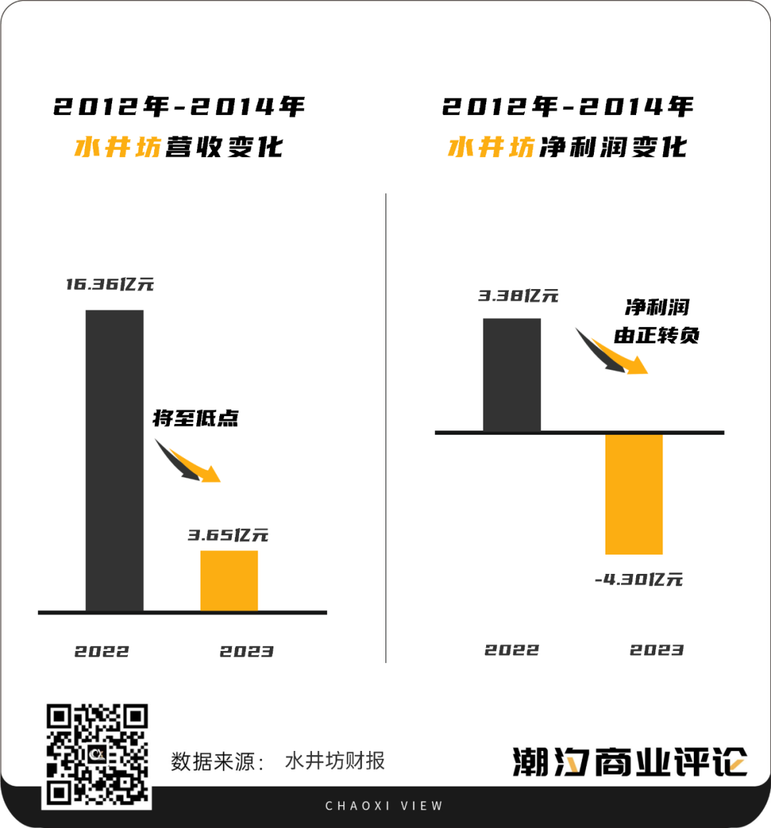 频繁更换总经理,导致了水井坊内耗较为严重,甚至还出现了一年内多位的中层干部离职的现象。而在业绩上2012年-2014年,水井坊营收几乎降至上市以来的最低点,分别为16.36亿元、4.86亿元、3.65亿元;净利润也由正转负,从2012年的3.38亿元跌至2014年的-4.30亿元。