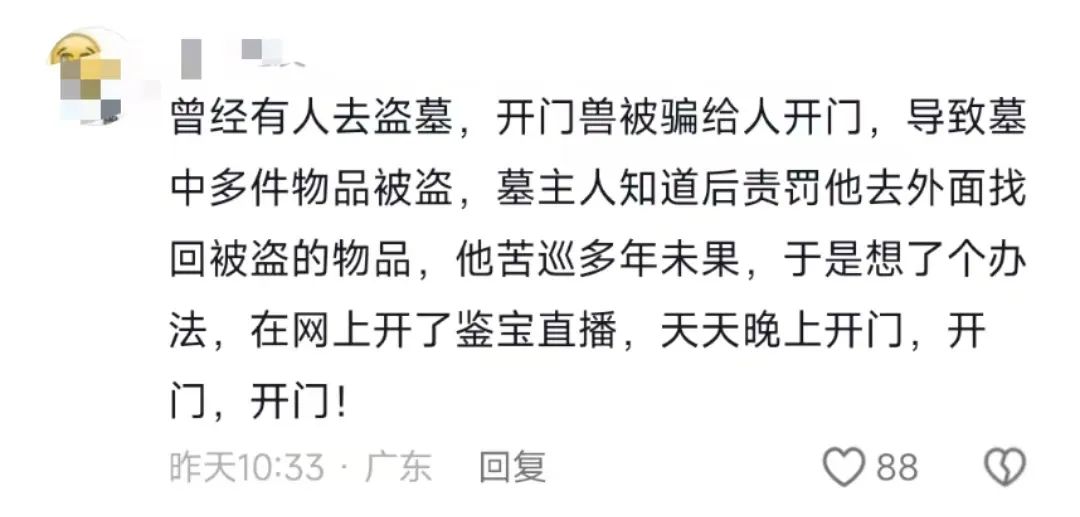在所有暗语中,最常听他说的就是“开门”一词。就在前两天,听泉为了一件文物喊出了这个词。