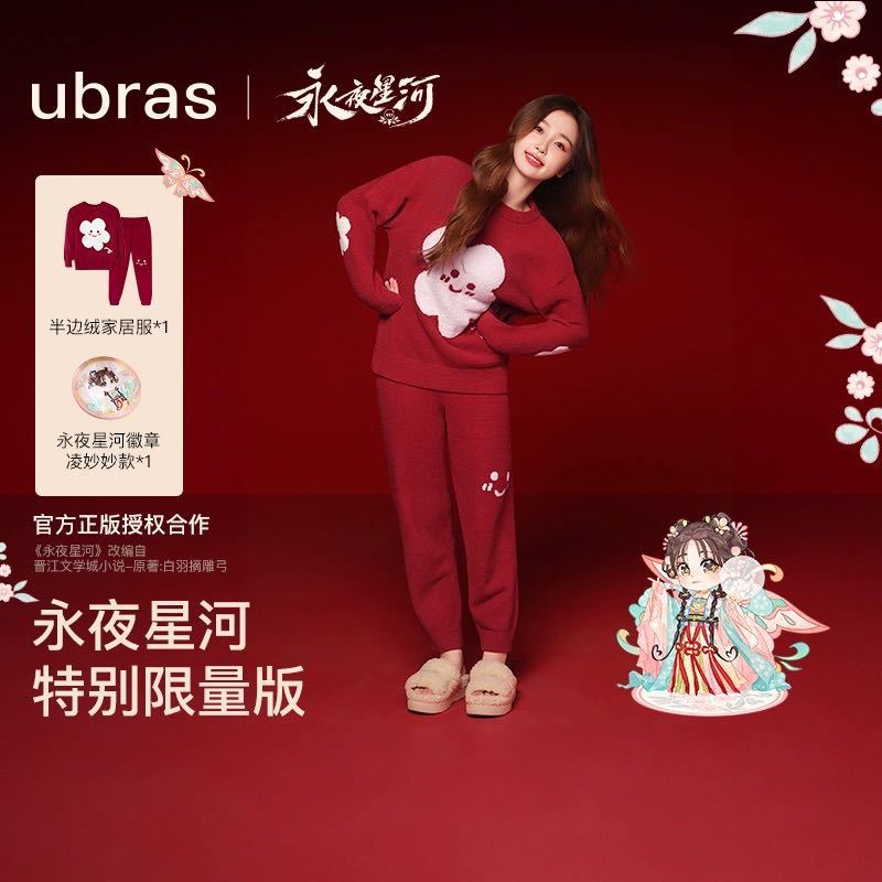 近日,ubras 联动大热剧集《永夜星河》推出特别限量版活动,上新 ubras 半边绒家居服及《永夜星河》凌妙妙 Q 版徽章两款限量产品,用户进入 ubras 线上官方旗舰店搜索「永夜星河」即可购买。